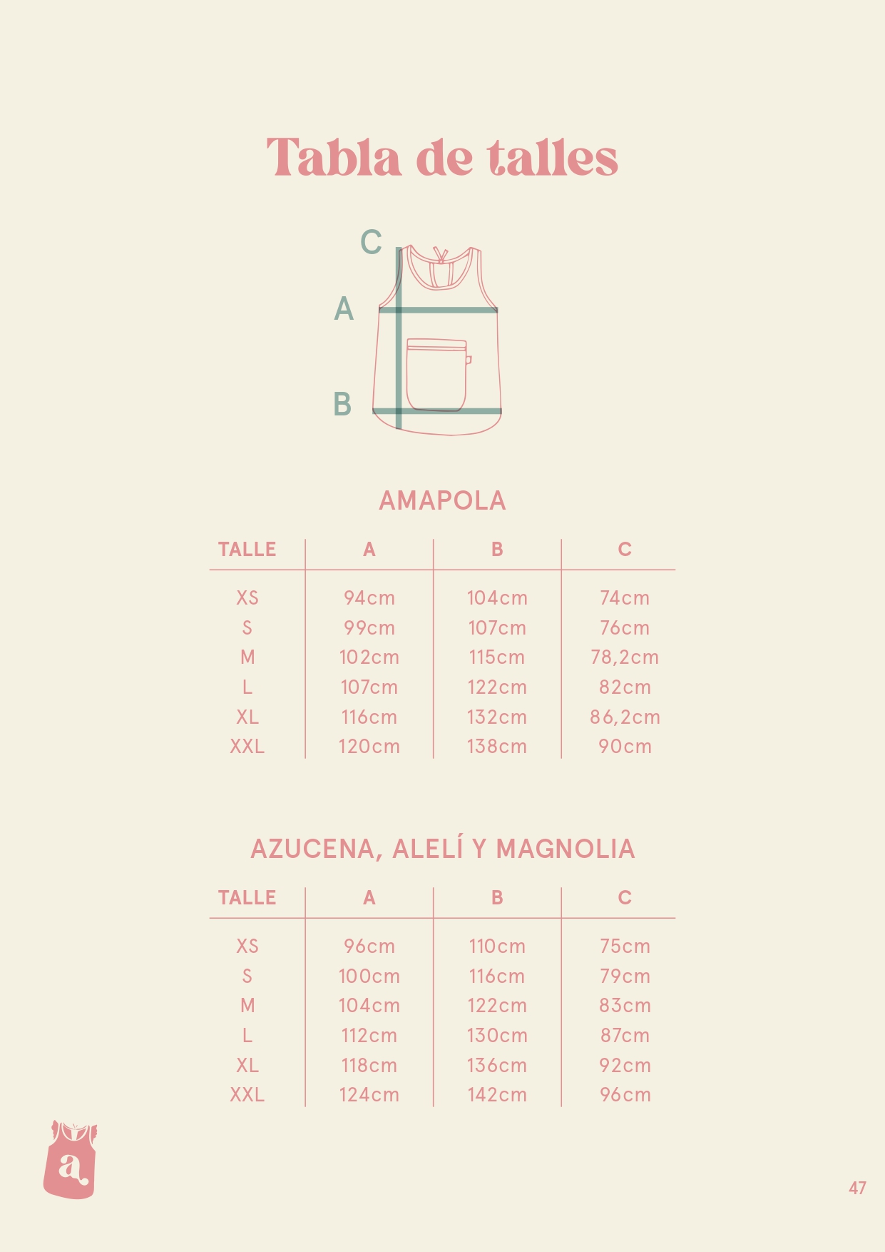 Este modelo tiene una tabla de talles diferentes porque son solo tres talles: